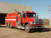 The Mountain Iron Fire Department has taken delivery of a pumper-tanker built by Custom Fire Apparatus of Osceola, Wisconsin. The apparatus has a Waterous 1250 GPM pump, 2,500 gallon water tank and a Waterous/Pnuemax Compressed Air Foam System (CAFS). The pumper-tanker is on an International 7600 chassis powered by a CAT C-13 engine with an Allison automatic transmission. The price tag was put at $295,000 with most of the money coming from a grant from the Department of Homeland Security.