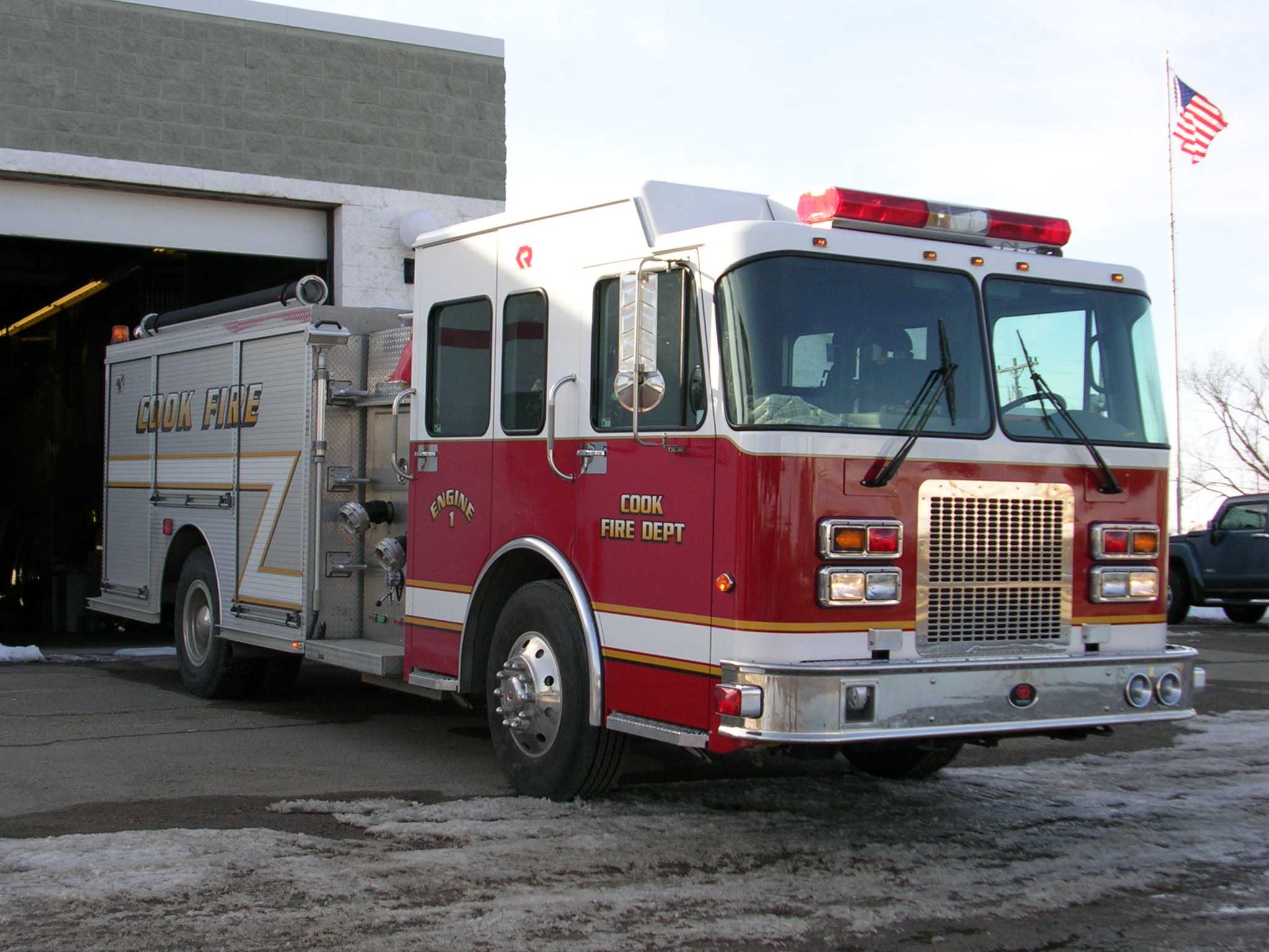 The Cook Fire Department has taken delivery of a 2006 Rosenbauer General pumper. The apparatus, which was put together in Wyoming, Minnesota, includes a Waterous 1250 GPM single stage pump, 1,000 gallon tank and a Foam Pro 1600 Class A foam system. The cost of the new pumper was put at $220,000, with around $170,000 coming from a grant from the Department of Homeland Security.
