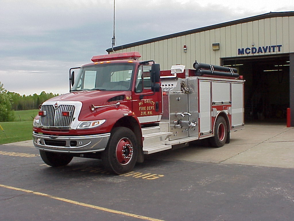 The McDavitt Fire Department is the proud owner of a Pierce DX Contender pumper. The apparatus, which is on a 2006 International chassis, includes a 1250 gpm single stage Hale pump, 1,000 gallon tank and Hale Logix 2.1 foam system. The pumper was purchased from Clarey's Safety Equipment of Rochester, Minnesota at a price of nearly $148,000. The McDavitt Fire Department covers the United Taconite Fairlane Plant in Forbes.