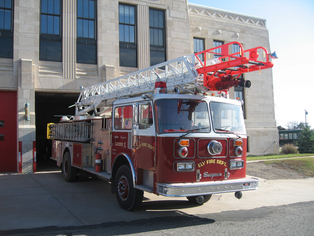 The Ely Fire Department has purchased a 1983 Seagrave /FWD quint. It includes a 75 foot ladder, 1250 GPM Waterous single stage pump and a 300 gallon poly booster tank. An Onan generator provides lighting and other electrical resources to the apparatus. The cost of the quint and equipment was put at $75,000.