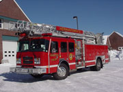 Hermantown's new E-One Tyhpoon aerial apparatus went into service on January 1, 2004. The rig includes a 75 foot ladder, 1250 GPM Hale pump and a Foam Pro 1600 foam unit. The apparatus is powered by a 300 horsepower Cummins diesel engine with an Allison automatic transmission. The cost of the aerial was put at nearly $423,000. The truck is based out of Hermantown Station One, which is located on the Maple Grove Road.