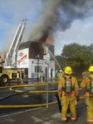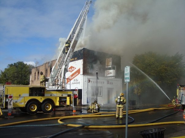 October 11, 2009 — The fire which heavily damaged the Stardust Bar, 2325 1st Avenue in Hibbing, started as a result of an electrical problem. According to Hibbing Fire Marshal Jim Iammatteo, the cause of the fire was traced to the overloading of circuits. The determination was made following an investigation conducted by Iammatteo, a representative of the owner's insurance company and an electrical engineer hired by the insurance company. The fire was reported around 10:55 a.m. on Sunday, October 11. The blaze burned for several hours. No one was injured. The fire was fought by crews from Hibbing Fire Department while the Chisholm Fire Department provided a Rapid Intervention Team (RIT).