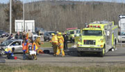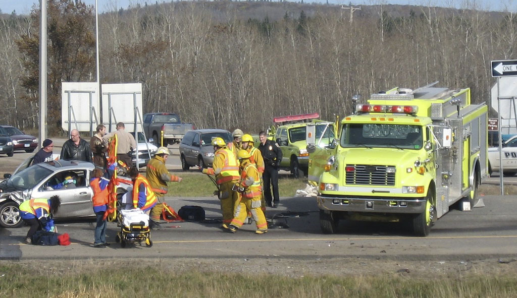 October 27, 2009 — Fire and EMS personnel from Chisholm were dispatched to a two vehicle crash on Highway 169, near the east entrance to Chisholm. The crash, reported around 12:45 p.m. involved a passenger car and a dump truck. The female driver of the car, 20 year old Stevie Peikey of Chisholm, had to be extricated by Chisholm firefighters who used the Jaws of Life to open her driver's door. Peikey was transported by Chisholm Ambulance to Fairview University Medical Center-Hibbing with minor injuries. She was later released. The 30 year old driver of the dump truck was not injured.