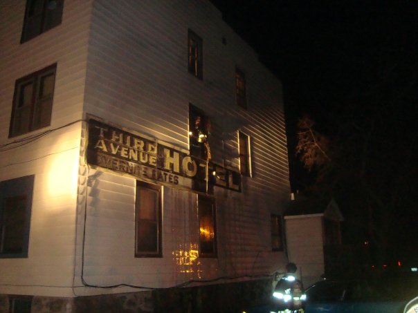 November 15, 2009 — The sprinkler system in the Third Avenue Hotel apartment building, 201 3rd Avenue North, in Virginia is being credited with containing a fire which broke out in the heavily populated building. The fire was reported shortly after 5:00 p.m. When Virginia firefighters first arrived, small flames were seen in a second floor apartment. The room where the fire started had fire and smoke damage while the apartment below had water damage and the apartment above had smoke damage. The Mountain Iron and Eveleth fire departments were also called to the scene. One of the apartment's occupants had minor burns. No other injuries were reported as all of the residents were safely evacuated. The fire displaced four families. The cause of the fire is under investigation, although one of the residents stated that he was sure the fire was caused by an electrical problem.