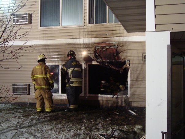 December 2, 2009 — A fire in the Raintree West Apartments in Mountain Iron caused extensive damage to one apartment and resulted in the evacuation of the entire building. The Mountain Iron Fire Department was dispatched to a report a couch fire around 5:55 a.m. While the fire was initially knocked down by a resident with a fire extinguisher, crews found that the couch was still burning. Firefighters quickly controlled the fire and then began ventilating the apartment complex. The occupant of the apartment, 69 year old Carol Gruden, was taken to the Virginia Regional Medical Center where she was treated for smoke inhalation and then released. The Virginia, Eveleth and Fayal fire departments were also called to fire. The cause of the fire was determined to be a cigarette. Damages were estimated at $80,000.