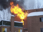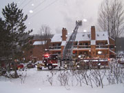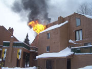 February 7, 2010 — Firefighters from Grand Rapids, Cohasset and the Hill City fire departments battled a late afternoon fire at the Sugar Lake condos, formerly the Sugar Hills Ski Resort. The apartment complex is located southwest of Grand Rapids. Fire officials say the blaze was contained to one apartment, although the third floor had heat and smoke damage while the first and second floors had water damage. Thirteen families were displaced. Two pets, a ferret and a cat, perished while another cat was saved. Damages were put at around $200,000 but officials say that estimate could go higher. The cause of the fire is being linked to a stove that was left on. Information courtesy of the Grand Rapids Herald-Review. Photos courtesy of the Grand Rapids Fire Department.