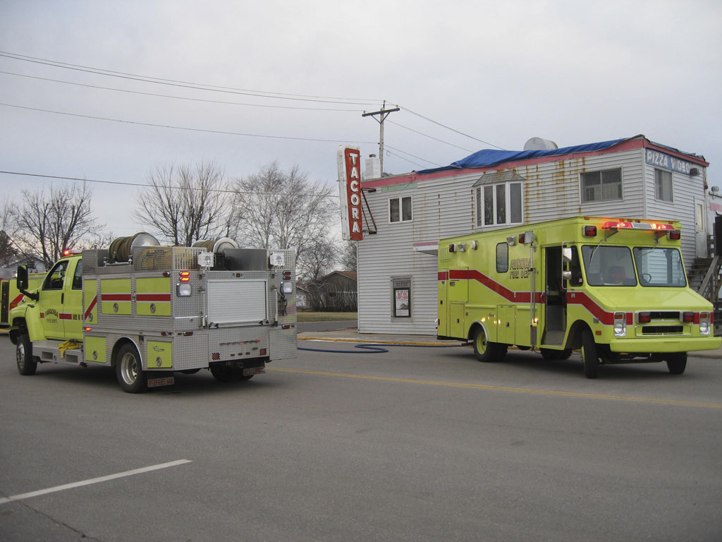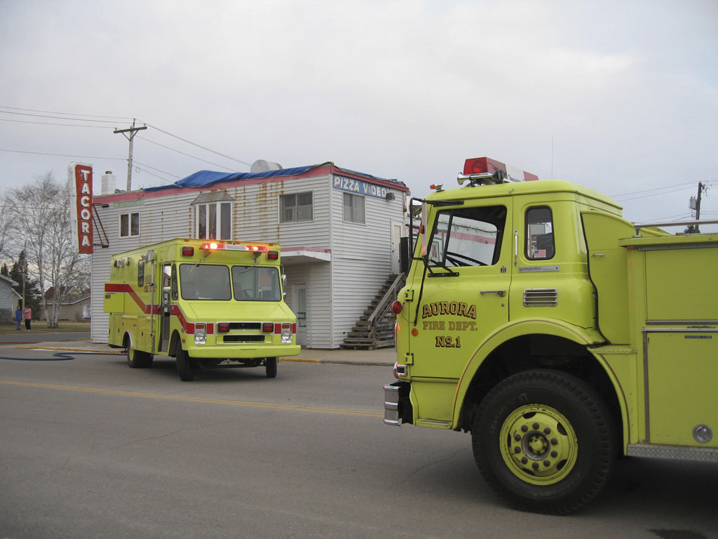 April 5, 2010 — Firefighters from Aurora and Palo responded around 6:45 p.m. to a report of a fire at the Tacora Theatre, 320 North Main Street in Aurora. The fire was quickly contained to a portion of the building's ceiling. No damage estimate is available. The cause of the fire was determined to be an electrical problem.