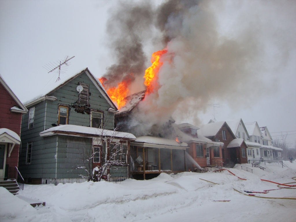 January 7, 2011 — Firefighters from Virginia, Mountain Iron, Eveleth and Fayal Township battled an early afternoon house fire in the southside area of Virginia. The blaze was reported just before 1:30 p.m. in the 100 block of 8th Street South. Arriving Virginia firefighters found flames and heavy smoke coming from a two story hose at 111 8th Street South, with houses on each side of the structure also being threatened. Firefighters were initially told that there were people in the burning house, but upon arrival were informed that everyone was out of the structure. No injuries were reported, but firefighters had to contend with SCBA's that were freezing up. Crews remained on the scene for well over five hours. The two adjacent homes had smoke damage. The cause of the fire remains under investigation.