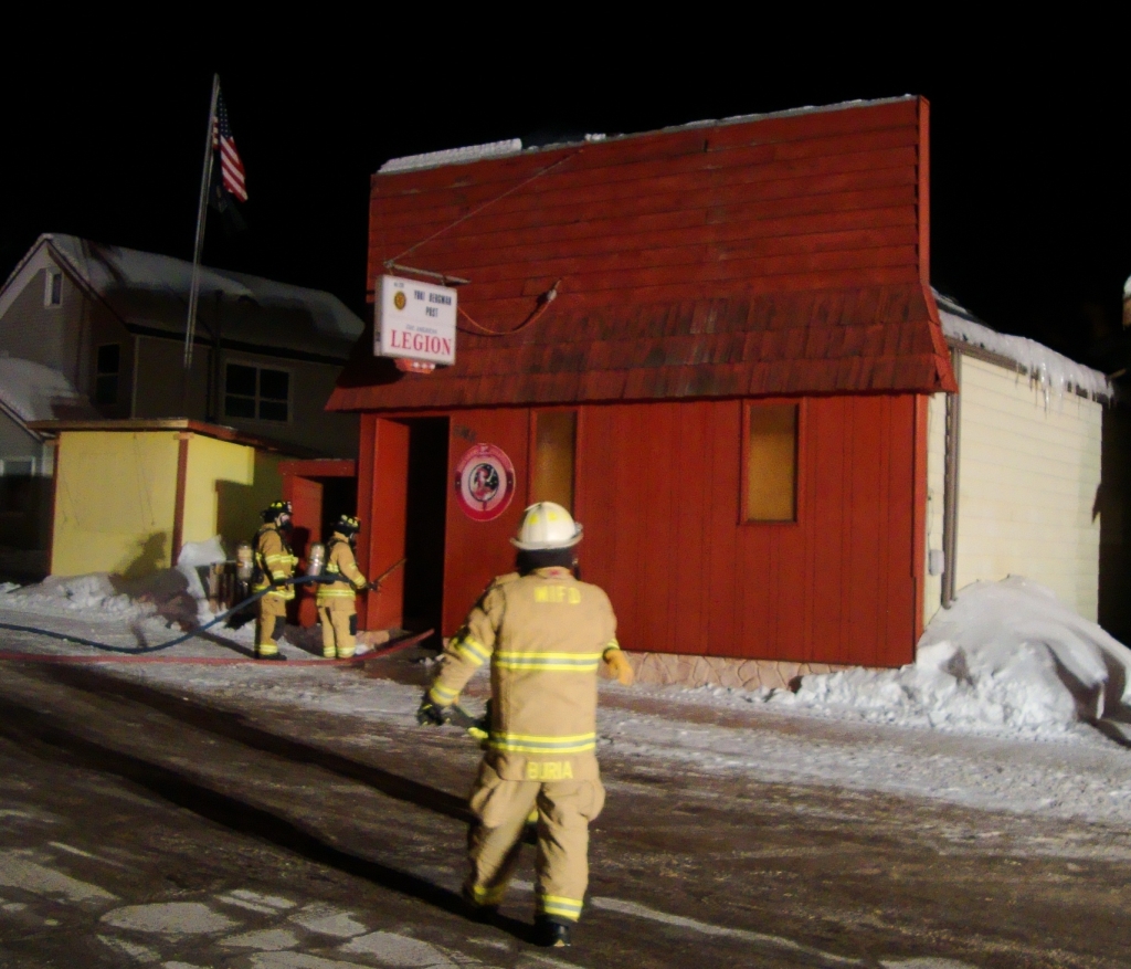February 9, 2011 — Mountain Iron firefighters were dispatched to the American Legion building in Mountain Iron around 6:00 p.m. after receiving a report of smoke in the attic of the building (5748 Mountain Avenue). The fire, which started near an electrical fixture in the attic, was quickly contained. Damages were in the thousands of dollars. The Eveleth Fire Department provided a Rapid Intervention Team at the scene. No injuries were reported.