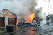 July 18,2011 — Three garages, four vehicles and a shed were destroyed during a fire in Virginia's Northside area. The blaze was reported around 8:30 p.m. in the 800 block of 12th Street North. Firefighters from Virginia, Mountain Iron, Eveleth, Fayal Township and Biwabik battled the fire in hot and humid conditions. Three families were displaced by the fire when three homes in the area were damaged. No injuries were reported. The cause of the fire remains under investigation. No damage estimate is available.