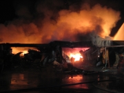 September 24, 2011 — An early morning fire has devastated the city of Babbitt. Babbitt firefighters were called shortly before 2:00 a.m. to a fire at Zup's Supermarket, located in the Babbitt Shopping Center. The blaze spread from the grocery store to the adjacent Babbitt Drug. Both the supermarket and the drug store are a total loss. Several businesses, including the Babbitt Weekly News, U.S. Bank, Kell's Kitchen, a laundromat and another business received extensive smoke and water damage. Nine fire departments were involved in battling the huge fire. Babbitt Mayor Glenn Anderson said the fire is "devastating to the city and the community." There have been no reports of any injuries. The cause is under investigation by the State Fire Marshal's Office.