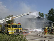 July 31, 2006 — An early afternoon fire destroyed a home in the southwest section of Chisholm. The blaze was reported around 12:11 p.m. in the 600 block of Second Avenue S.W. Firefighters from Chisholm and nearby Hibbing remained on the scene for several hours. According to Chisholm fire officials, the fire started in the garage and quickly spread to the rest of the house. Several firefighters were treated on the scene for possible heat exhaustion due to high temperatures and high humidity. The cause of the fire remains under investigation. No damage estimate was available. Photos by Steve Zalec of Chisholm.