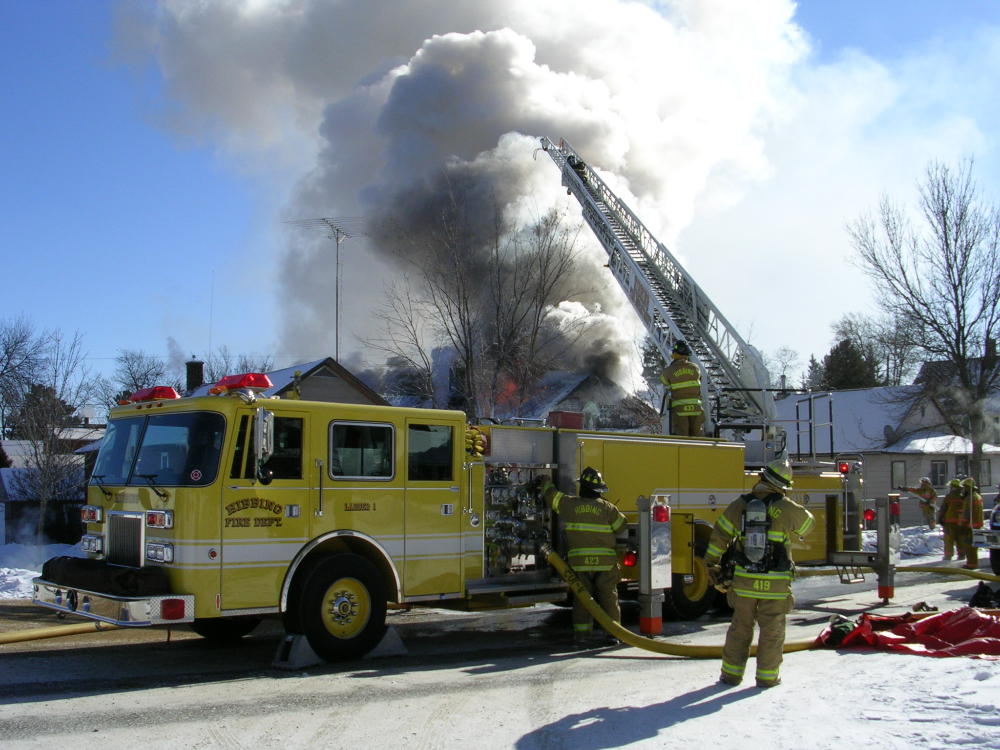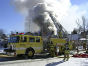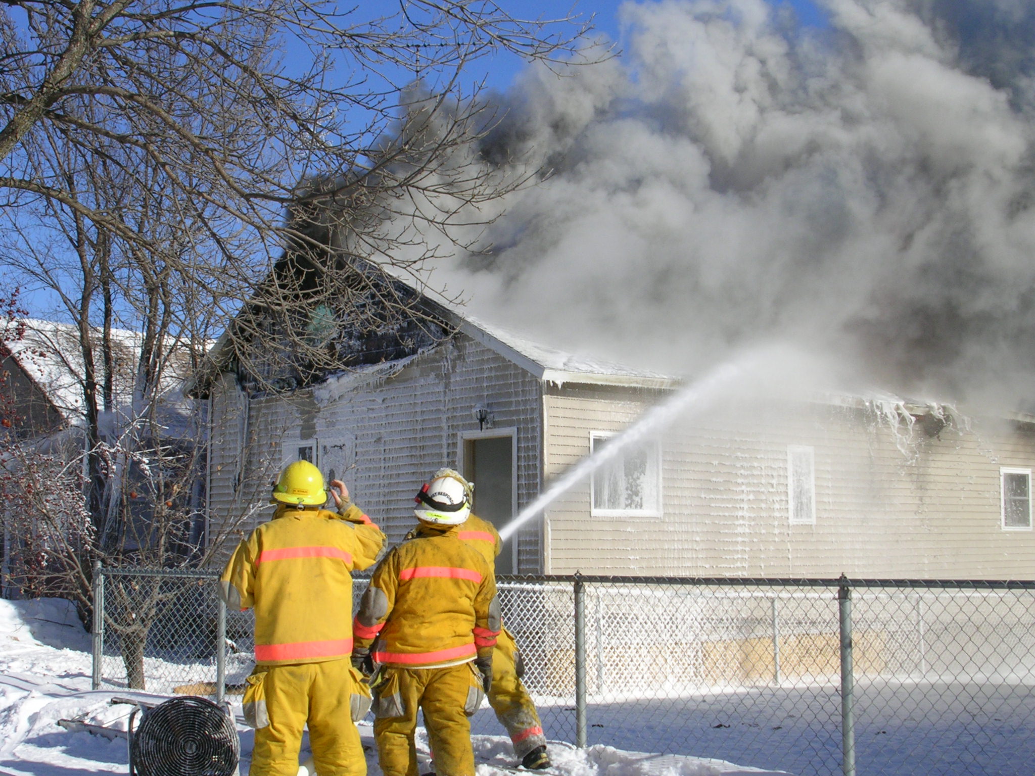 February 5, 2007 — Firefighters from Chisholm and Hibbing were dispatched to a late morning house fire at 316 2nd Avenue Northwest in Chisholm. The blaze was reported around 10:55 a.m. by the homeowner, who had attempted to thaw out frozen pipes in a crawl space with a homemade propane heater. The fire quickly spread to the rest of house and although an aggressive interior attack was started, crews were pulled out when the condition of the house began to deteriorate. It was 10 below zero when firefighters were dispatched. Fortunately, there were no injuries. Chisholm Fire Chief Bob Brown said the house was a total loss.