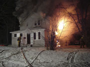 November 28, 2008 — Firefighters from Eveleth, Fayal Township, Virginia and Mountain Iron were dispatched to a report of a house fire at 208 Elba Avenue North in Eveleth. The fire was reported just at 7:00 P.M. Several interior attacks were conducted, but a decision was made to go "defensive" after the structural integrity of the house became questionable. There were no injuries. The cause of the fire was determined to be accidental. The two story house was in the process of being remodeled at the time of the fire