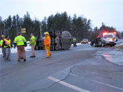 February 9, 2009 — Fire and EMS personnel from Cherry Township, Clinton Township and Hibbing and Virginia were kept busy at the scene of tanker truck-car crash in Cherry. The incident was reported around 4:45 p.m. at the intersection of State Highway 37 and the Tamminen Road. The driver of the car, 46 year old David Begich of Eveleth, was critically injured, while the driver of the truck, 61 year old Christopher Carle of Virginia was not injured. About 80 gallons of gasoline and 60 gallons of diesel fuel were spilled when the tanker flipped on its side. The incident forced the highway to be shut down for almost 7 hours as the tanker was unloaded. The accident is under investigation by the Minnesota State Patrol.
