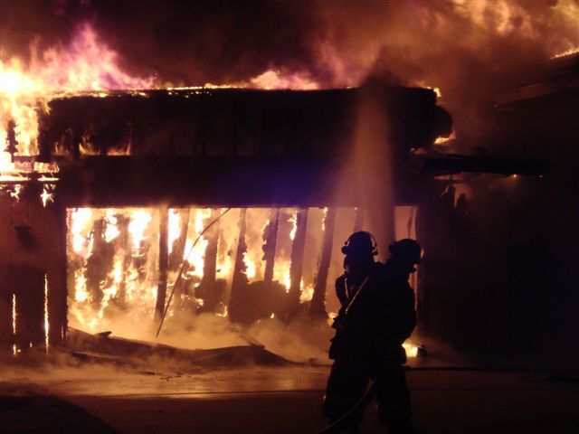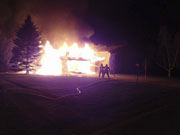 April 29, 2009 — Firefighters from Fayal Township and Eveleth were dual dispatched to a report of a garage/house fire at 4399 Cedar Island Drive in Fayal Township. The fire was reported around 2:15 a.m. Due to the quick actions of the arriving crews and a superb incident command system, only the attached garage portion of the house was destroyed. The rest of the house, with the exception of one corner area, had minor smoke and water damage. The Mountain Iron Fire Department provided a Rapid Intervention Team while the Gilbert Fire Department provided additional personnel. No injuries were reported. The cause of the fire has not yet been determined.